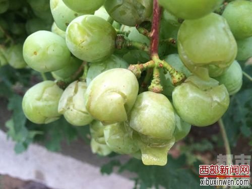 受灾最严重的应该是葡萄园了,记者在葡萄园中看到,葡萄们都被砸出了裂痕,而这些裂痕,过不了多久,就会发生霉变,这将近一百多亩、即将上市的葡萄将会彻底绝收。
