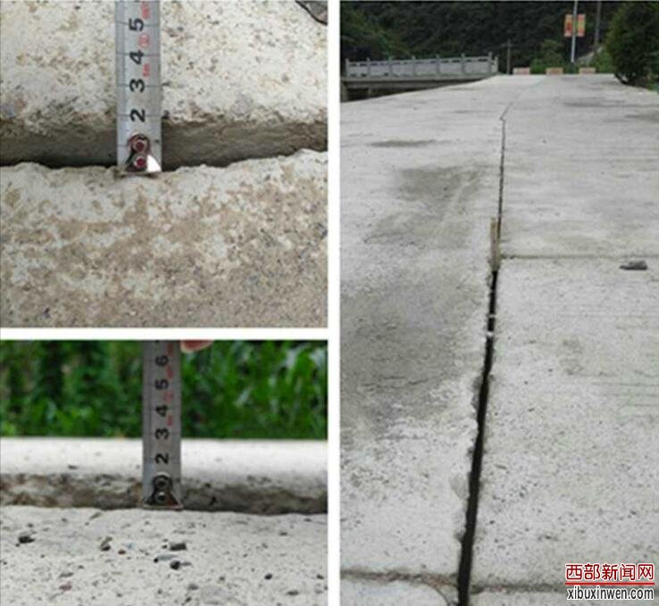 在巴山镇陈镇长和邓副镇长的陪同下,媒体同志在该路段用石片居然抠出了石子,混凝土松软,整条道路成片成片铺满了砂石,并多处出现裂缝。陈镇长称道路起渣是当时为了迎接上边领导检查,冬天铺的路,是由于天气寒冷混凝土受冻导致的,道路损毁的更大原因是河对面的水利工程施工时的挖掘机造成的。陈镇长所说的河对面水利工程在建设的过程中导致靠近河岸的几户村民房屋裂缝,村民多次找镇领导无果。