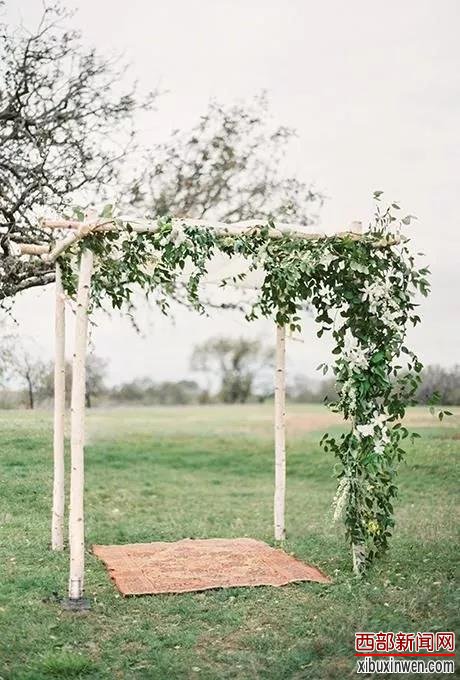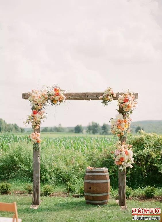 这里所说的传统木架,是介于不能随地取材的婚礼场地,用加工过的木条搭建的婚礼拱门,原木的形状可能比较整齐统一,或方或圆,颜色也很有质感。