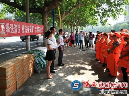 陕西市政网讯(通讯员 崔巧玉)7月21日上午,秦都区总工会在中华广场启动全区“夏季送清凉、依法保安康”活动,8万余元降温防暑慰问环卫工人和一线职工。