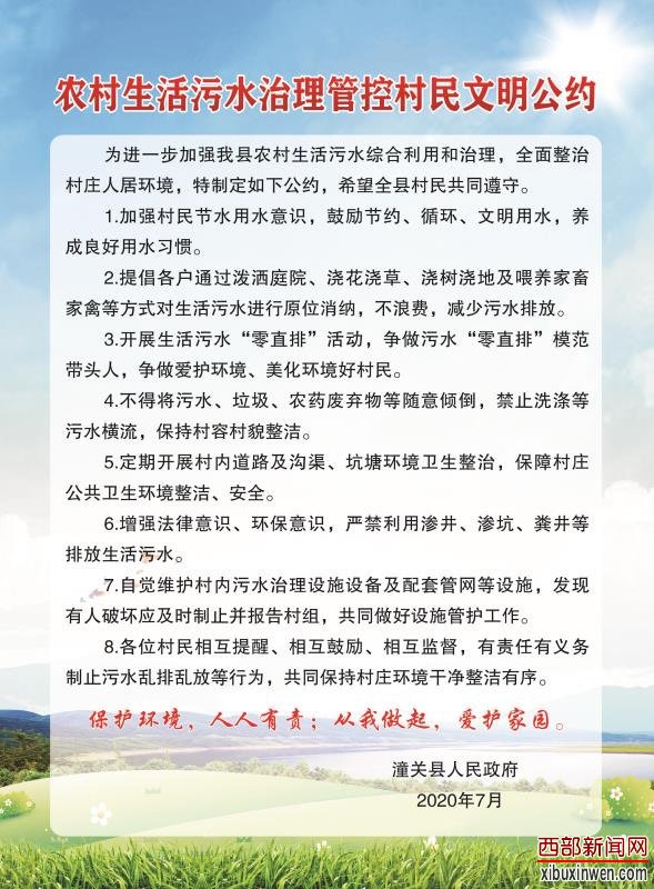 潼关县深入开展农村生活污水治理宣传活动,积极引导社会各界和广大群众关心、支持、参与农村生活污水治理工作,营造建设美丽宜居乡村的浓厚舆论氛围,提高农村生活污水治理的社会知晓度和满意度,切实提升农村人居环境整治水平。