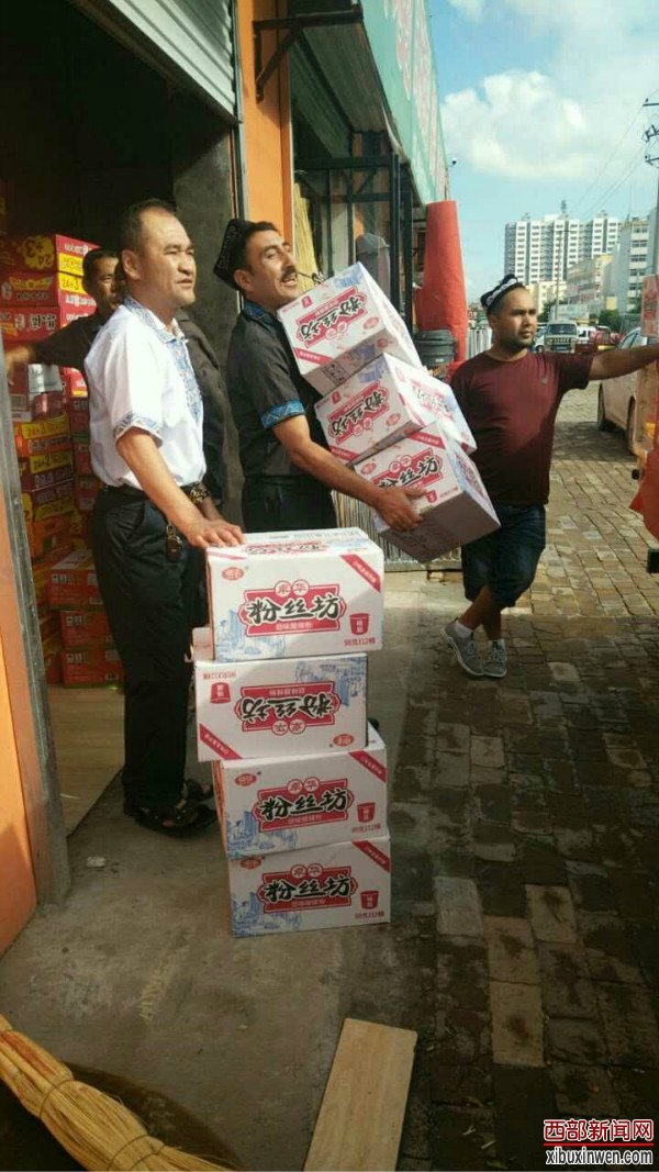 来榆林新疆籍务工经商人员阿不都许库·吾买江看到环卫工人顾不上吃饭,埋头清理淤泥的场景后。阿不都许库看在眼里,急在心里。他告诉西部新闻网记者说:“我来榆林生活多年,与榆林人民建立了深厚的感情,榆林就是我的第二故乡,我们都是一家人。看到这种情况后我十分想能为当地受灾群众做点什么能够帮助他们的事情,希望为榆林尽一点自己的绵薄之力。”7月26日早晨,阿不都许库·吾买江把事先在餐厅做好的热腾腾的羊杂碎送到了正在清扫淤泥的60名环卫工人手中。
