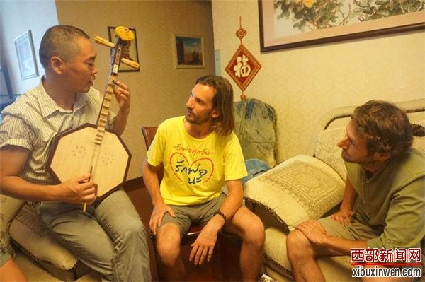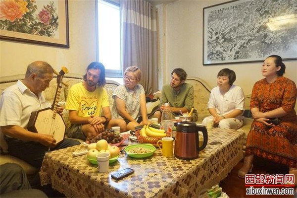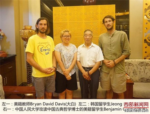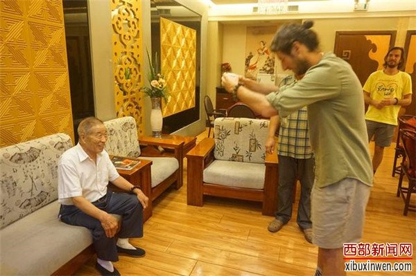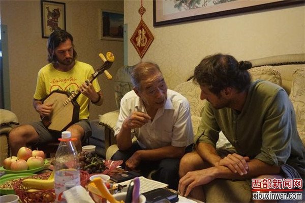 西部新闻网讯(记者 张丽)7月29日上午,三位来自异国他乡的年轻人——美国教师Bryan David Davis、美国留学生Benjamin Giaimo和来自韩国的Jeong Hyun Ji慕名而来,在西安拜师皮影戏碗碗腔名家王进法老先生,学习同朝皮影的演唱和伴奏艺术。