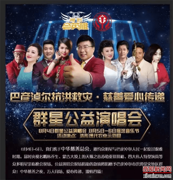 奉献一份爱心,共筑美好家园,巴彦淖尔抗洪救灾,慈善爱心传递群星公益演唱会,8月4日我们不见不散!