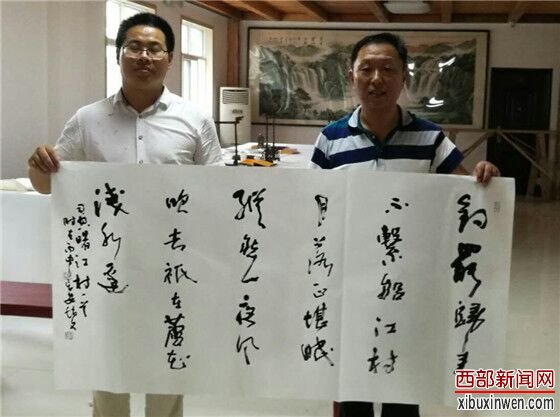 西部新闻网讯(记者 张丽)2016年7月31日,西部新闻网书画院负责人特邀请实力派书画家童遵善、刘为、赵文和王忠民四位艺术家前往终南山脚下的西部新闻书画院,为书画院开业做后续筹备工作。当天西部新闻网总编张龙亲自前来慰问并亲切交谈。受邀请的四位实力派老师留下了珍贵的墨宝,泼墨现场气氛热烈,翰墨飘香,其乐融融。
