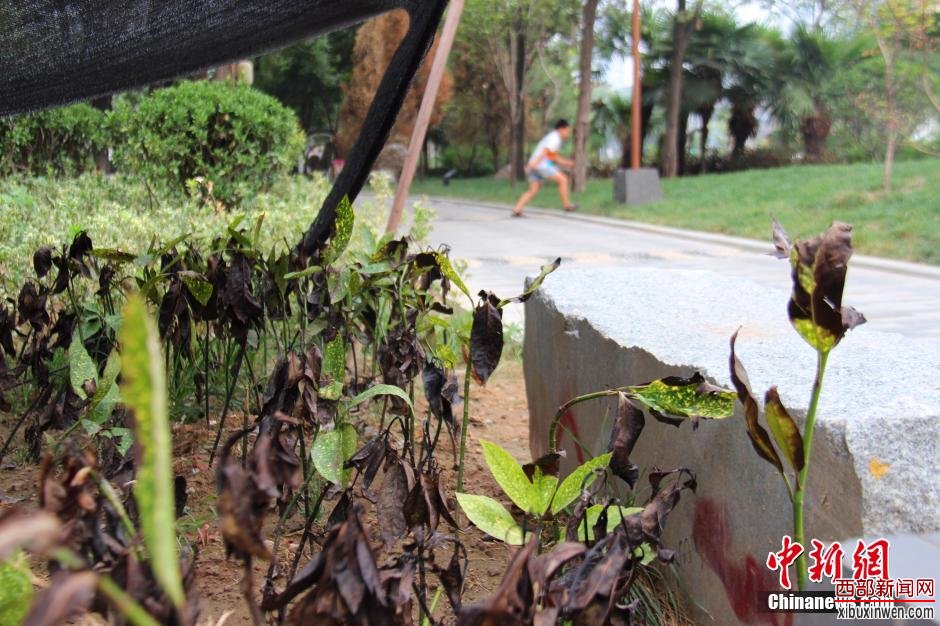 西部新闻网讯(记者 吕虹萱)入伏以来,西安遭遇罕见旱灾,陆续发布橙色高温预警和红色高温预警。记者6日在西安护城河沿岸公园看到,部分树木植被由于干旱缺水,已经干枯,甚至死亡。尽管工作人员每天给沿岸树木和草类浇水,给部分植被搭遮阴网,但由于干旱严重,仍有部分植被出现枯死现象。持续干旱导致西安护城河公园部分树木干枯。冀浩凡 摄