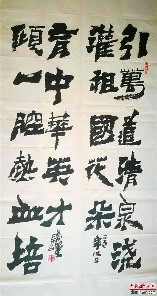 西部新闻网讯 枭墨,秦都频阳人(今富平县),原名曹树强,中国当代著名书法家,现任中国三秦书画院副院长,中国世纪大采风书画院陕西分院副院长,陕西省书法家协会会员,名人书画院院士,陕西省艺术研究院理事,瀚墨书画院院长,北京市盛世轩书画研究院理事,陕西省华夏艺术交流中心特聘顾问,世界弘扬关公文化武学书画院副院长。枭墨书法,大破大立,行僵立势,雄健苍郁,酣畅驱驰,传统而不古,狂放而不羁,有强烈的视觉冲击力和艺术感染力。以我法书,以法书我,孜孜以求,共享书法意境之乐趣。成绩斐然,荣获省大奖四十余项。