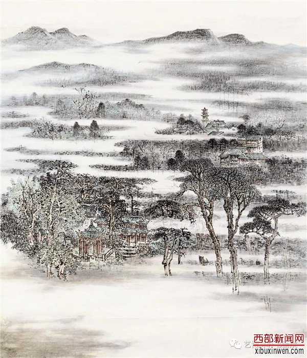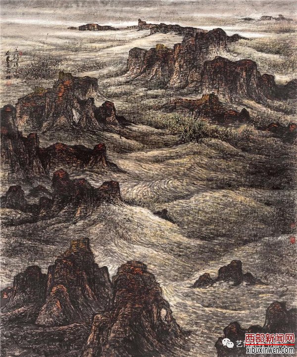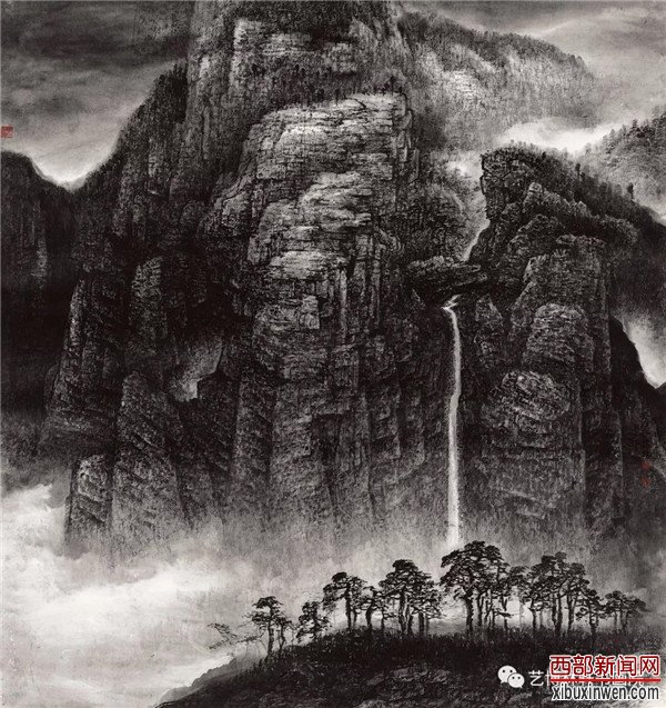 (杨霜林山水画 王西京)霜林是长安画坛一位不可多得的挚于传统、勤于探索的本土画家。这位从黄土地上走来的关中汉子,少年时就与绘画艺术结缘,在那个贫瘠的年代里以涂鸦丰富着自己的成长。之后多年的求学、军旅生涯,霜林不仅用脚,更是用心走遍了美丽而神奇的西部山水。大自然的风光壮美与画家广博多识的内心世界,汇成其艺术世界之命运交响,同时,也造就了他刚毅、沉稳的个性,为今天的艺术创造打下了坚实的基础。