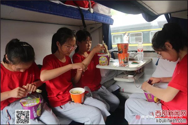 因事发突然,一些参加此次研学之旅的同学显得有些慌乱,还好贾平凹文化艺术研究院的领导和老师们紧急商讨,调整计划,快速安抚,并为大家定了早餐和午餐。同学们情绪稳定后,便摊开研学手册写起了日记,有的安静地看起小说《秦腔》。虽然行程并非一帆风顺,但同学们大多面带微笑,显得轻松而乐观。10点50分列车重新启动,吃完热腾腾的午饭,大家又围坐在一起谈论问题。有同学买来了水果,拿给同伴分享,有同学从包里拿出一大盒的饼干,边走边塞到每一个人手里。突然,一位年纪较小的同学感觉身体不适,几位年纪稍大的同学马上陪伴安慰,并赶忙找来队医,像哥哥姐姐一样悉心照顾着他。面对突发事件,面对波折大家之所以会如此冷静和乐观,是因为心中的那份信任,是对主办方、对团队、对自己同伴的信任。他们相信,主办方贾平凹文化艺术研究院和陕西禧福祥品牌运营有限公司会提供迅速快捷的生活保障;他们相信,自己的同伴不会抛下自己,即使面对再大的困难,只要有同伴在,只要有团队,就会觉得安心。晚上9点多,列车终于抵达北京西站。