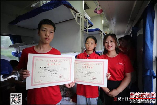 在列车上,研学老师们认真地审读了同学们的研学手册以及沿途所拍摄的照片,并根据各团队的表现,分别评选出了最佳美文奖、最佳摄影奖以及最佳团队奖。最终,许怡璇的文章凭借流畅的文笔、深刻的寓意获得最佳美文奖一等奖,程心仪、王明阳荣获二等奖,黄苏琪、王子涵、雒丹阳分获三等奖;章鉴中凭借“中外禧福祥”获得最佳摄影奖一等奖,马俊和邓语涵荣获二等奖,葛晓阳、杨宗桐、潘腾飞分获三等奖;由唐鑫龙、陈雨晨、张悦、刘雨萌、屈子熙组成的小组和由化一行、张晨煊、王晴、赵卓越、孙佳怡组成的小组分别荣获最佳团队奖。获奖的同学兴冲冲地领取了奖状,并留下了本次研学之旅最后的美丽合影留念。