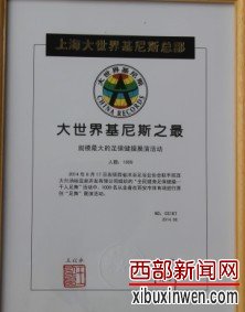 参观结束后,“中国第一条养生旅游线路”开通仪式在汤峪温泉观音广场隆重举行。开通仪式上组委会向陕西大兴汤峪温泉开发有限公司颁发了在西安市体育场同陕西省沐浴足浴业协会协同创造“千人足舞”足保健操表演活动,获得规模最大的足舞保健操展演活动“大世界基尼斯之最”奖牌,并由中国养生产业博览会组委会当场颁发了“中国第一条养生旅游目的地”奖牌。