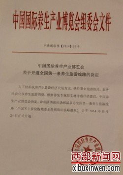 西部新闻网讯(记者 文峰 宋健)中国(西安)国际养生产业博览会于2014年8月22日至24日在古城西安隆重举行,来自世界各地的养生专家、文化名流行业协会近300人于8月24日在中国汤峪隆重举行“中国第一条养生旅游线路”开通仪式。