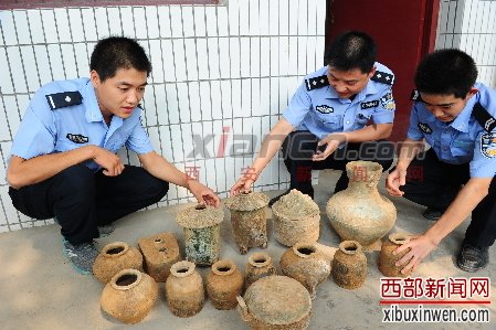 西部新闻网消息(文风 殷诗慧) 砖厂在取土时,发现了一个汉代古墓葬,砖厂老板擅自取出了5件文物,而4名民工趁着夜晚也偷走9件文物。礼泉县公安局烽火派出所闻讯后快速出击,追回了14件文物。