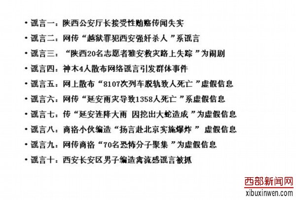 自今年6月起,陕西省公安机关部署开展了集中打击整治网络违法犯罪专项行动,截止目前,因网络违法犯罪案件,陕西警方已批捕22人,整顿网络秩序283家。省公安厅还专门设置了举报电话029-86165593,24小时受理群众举报。2013年,陕西警方通过调查落实,对一些影响社会公共秩序的网络谣言及时进行了辟谣,遏制了谣言的继续扩大化。华商网搜集了2013年陕西“十大网络造谣”典型案例,呼吁网民理性上网,共同维护健康的网络环境。