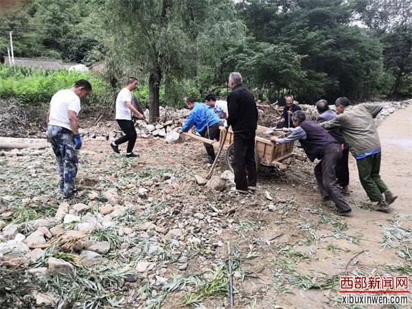 一方有难八方支援。8月19日,雨终于停了,天气转为多云,洪水也逐渐消退,为道路、电力和网络抢修创造出了有利的条件。在县、镇领导的积极协调下,县交通局调来了7台道路抢修机械(3台挖掘机,2台装载机,2辆自卸渣土车),沿路摆开了抢修大会战。电力公司也派来了四五十人的抢修队伍,为查清线路受损情况,及时抢修,在道路不通的情况下,他们徒步前行,沿途看到哪里线路有故障他们就在哪里抢修,饿了就吃自带的干粮和方便面,渴了就喝山泉水,腿疼了歇会再继续走。连续几天每天干到深更半夜才撤离,非常辛苦。通讯网络公司也迅速跟进,抢修损坏的光缆线和信号基站。与此同时,村四支队伍也及时组织群众开展生产生活灾后重建,清除路面土石沙,加固河堤险段……
