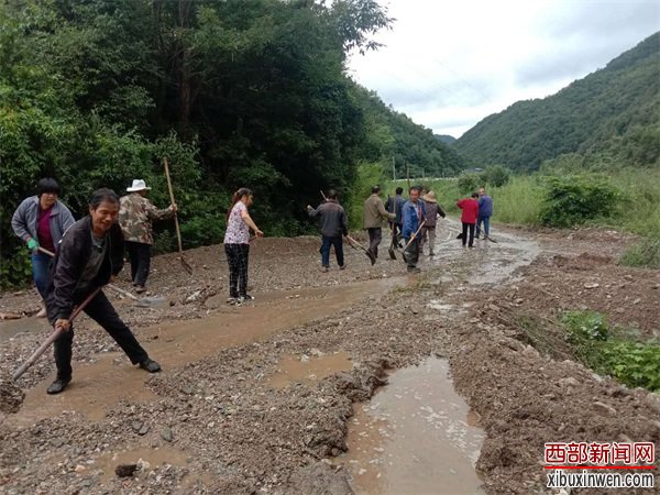 摸清底子后,村支书解辉和副村长廖贵斌顾不得吃饭顾不得休息,更顾不得个人的安危,又风尘仆仆地徒步赶到镇上,汇报受灾情况,顺道安排各组人员清理路面垃圾石块,暂修一个临时便道,让人能通行。