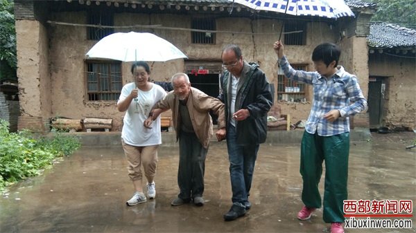 8月16日夜0点多,地处凤县河口镇的陈家岔村遭特大暴雨袭击,漆黑的夜晚,瓢泼大雨哗哗下个不停,坐在屋内能清晰地听到雨点激烈的击打地面的声音,叫人坐卧不宁、胆战心惊。正在岗位值班巡查的陈家岔村支书解辉,突然接到油坊河坝60多岁的孤寡老人唐素琴打来的电话:“家里的院子进水了,快来救救我。”