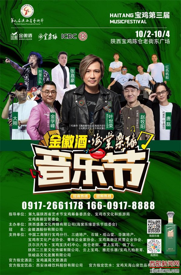 9月30日下午,10月2日—4日在宝鸡市陈仓老街东广场举行。届时,叶世荣、赵牧阳、唐磊、金学峰、大刚等近30支知名乐队和歌手齐聚现场,为观众奉上一场视听盛宴。