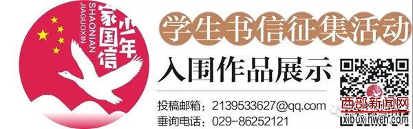 壮丽70年少年家国信#我们期待更多地市学生们的来信。在该微信公众平台刊发的稿件,均在《西安晚报》、《阳光报》刊登,家长可索取样报。