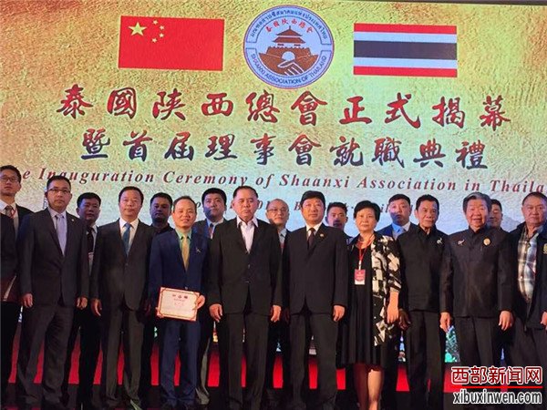 典礼由泰华著名主持人方舫小姐全程主持,大会首先邀请陕西省侨办副主任阚开沛、陕西省归国华侨联合会副主席徐鸣喆、陕西省海外交流协会办公室主任班辉、西安市贸促会常务副会长兼秘书长张庚元、泰国皇家御林军副总指挥那普恩上将、泰国十世皇侍卫长坤促阿楠披差警上将、泰国前商务部副部长拼娅翠保先生、那普恩上将顾问郑金龙先生和余新齐一起上台为泰国陕西总会揭幕 ,并由那普恩上将为余新齐会长授会长印信。随后余新齐宣读了理事会成员名单,并为每一位理事颁发了委任聘书。在陕西省海协会办公室主任班辉宣读了“陕西省人民政府侨务办公室关于批淮设立泰国海外联络处”的文件后,陕西省侨办副主任阚开沛上台亲自为泰国陕西总会余新齐会长授牌。