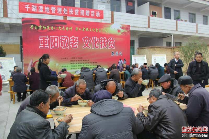 (李乃斌 周俊鹏 胡小军 )岁岁重阳,今又重阳。10月28日,由千阳县人民政府、陕西长安画派艺术研究院、陕西千湖湿地省级自然保护区主办,千阳县工商联合会、西安市千阳商会、南寨镇人民政府、南寨镇刘家坳村委会承办的”重阳敬老 文化扶贫”活动在刘家坳村举行。