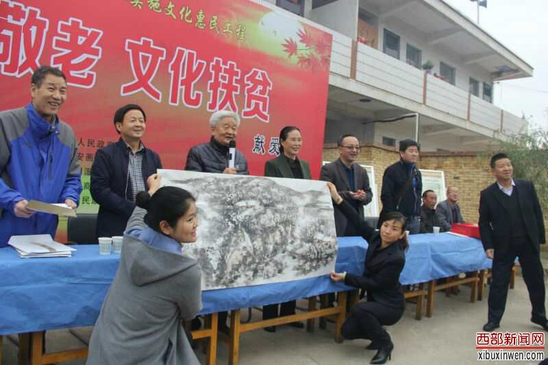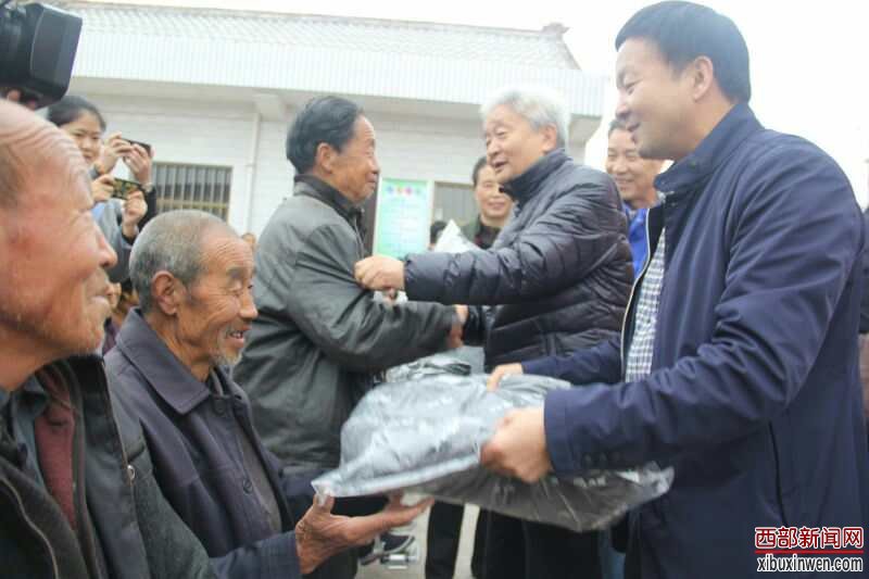当日上午,陕西长安画派艺术研究院院长赵振川等书画名家一行现场泼墨创作书画,10多名企业家义购书画作品。并当场为该村70岁以上的50多名老人发放了过冬棉衣。