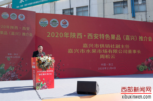 2020年11月4日,陕西·西安特色果品(嘉兴)推介会在浙江嘉兴隆重召开,本次活动由西安市人民政府主办,西安市农业农村局、周至县人民政府、临潼区人民政府承办。陕西省果业中心主任魏延安,西安市人民政府督查专员鲁强,嘉兴市人民政府副秘书长蔡山林,西安市农业农村局副局级领导周新民,嘉兴市农业农村局副局长裴浩然,陕西省产业化处处长杨建伟,嘉兴市供销社副主任、嘉兴市水果市场有限公司董事长周松云,西安市政府办公厅综合九处处长魏鹏,西安市农业农村局办公室主任沈建锋,西安市临潼区人民政府副区长徐毅,西安市周至县人民政府副县长周训良,西安市农业农村局果业处负责人李兰,西安市周至县人民政府办公室副主任张庚伦,西安市周至县特色产业发展服务中心主任赵朝阳等领导应邀出席,周至猕猴桃、临潼石榴嘉兴水果市场经销商代表,西安正达电子商务有限公司及新闻媒体界朋友应邀参加。本次活动的主题是宣传西安特色果业区域公用品牌,展示西安名优水果,拓展在华东、华南的陕西果品市场,促进特色果品的流通销售。