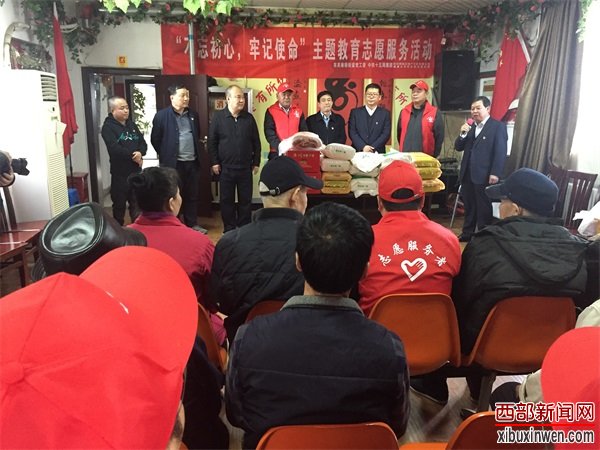 11月14日清晨,一群红马甲的到来,让平日安静的西安市碑林区金辉老年爱心护养院热闹了起来。中铁十五局集团东来地产公司西安项目公司党支部与政企党建联建单位西安市碑林区东关南街街道办党工委、中铁十五局集团城建公司西安房建项目部党支部三家单位联合开展“不忘初心,牢记使命”主题教育,组织共产党员为老人们送温暖爱心志愿者活动。西安市碑林区东关南街街道办党工委书记王锋为开展关爱老人,送温暖活动致辞,并高度赞扬了中铁十五局集团大型国有企业的责任和担当精神。街道辖区的社区领导、敬老院的领导一同参加了活动。