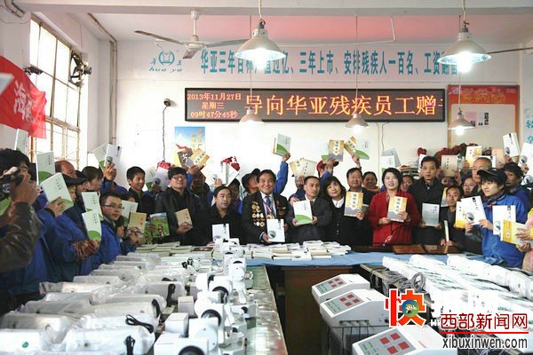王芳闻说:“华亚公司是残疾人的家,也是我们残疾人作家的家。两年前,中国好人、华亚董事长郭永胜,残疾人作家薛云平和我经过商议,并克服种种困难后,在全国第一个成立了陕西省残疾人作家协会。因此,在陕西文学基金会帮助残疾人作家出书后,我们第一个想到的就是华亚及郭董,今天特别为这里工作的残疾员工签名赠书,以表感谢!”