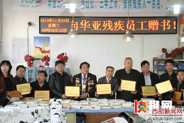 11月27日上午,残疾人作家给西安华亚残企员工捐赠新书