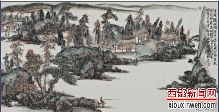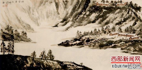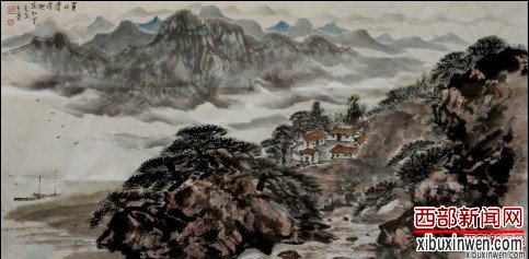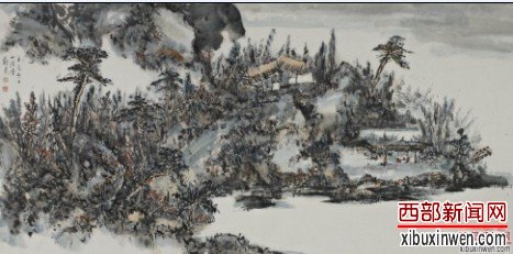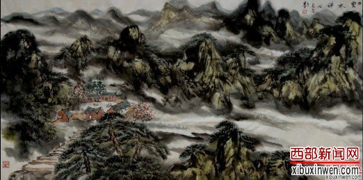 2012年8月19日在西安“亮宝楼”举办董明江山水画画展。