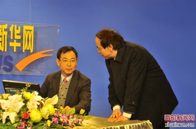 访谈开始前,新华网陕西频道总监牟柏苍向杨忠武局长介绍访谈流程