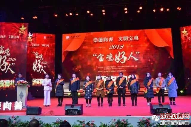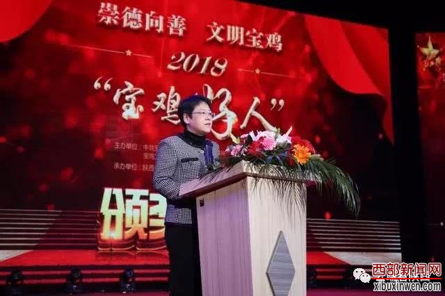 12月14日下午,由中共宝鸡市委宣传部、宝鸡市精神文明建设委员会办公室、宝鸡文明网以及长安银行宝鸡分行主办,陕西省文化联盟超市科技发展有限公司承办的,以“崇德向善,文明宝鸡”为主题的“宝鸡好人”颁奖典礼在该市广电传媒大厦一号演播厅隆重举行。宝鸡市委常委宣传部长,统战部长马鲜萍,宝鸡市人大常委会副主任张万奎,宝鸡市副市长贺东,宝鸡市政协副主席宋建国,宝鸡军分区副司令杜长富,长安银行宝鸡分行党委委员、副行长关建平出席本次活动。