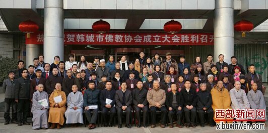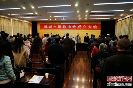 西部新闻网讯 (记者 张龙)2015年12月18日,陕西省韩城市佛教协会成立大会既首届一次会议在韩城银河大酒店隆重举行。市委、市政府、市人大、市政协领导主席台就坐,市政府高成文副市长作重要讲话。市道教协会、市基督教会、市天主教会、市伊斯兰教会到会祝贺。与会代表、嘉宾共百余人参加此次盛会。