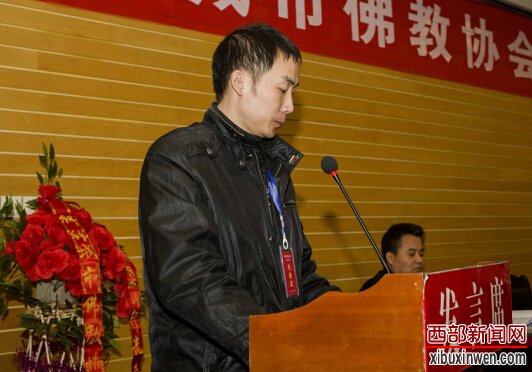市民宗局副局长薛敏谦宣读当选的韩城市佛教协会领导班子