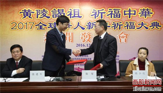 这一次,陕西广播电视台、黄陵县政府、黄帝陵基金会等单位,基于发展陕西文化产业的共同目标,决定发挥各自优势,吸纳社会各方力量,深入挖掘黄帝文化资源,举办“黄陵谒祖 祈福中华”--全球华人新年祈福系列活动,进而打造“黄帝陵华人祈福文化基地”,对于促进当地文化旅游产业,带动区域性社会经济全面发展,具有典型性和示范性。发布会现场,有关各方还签署了多项合作协议,为黄帝陵祈福文化活动形成良性机制、长期开展奠定了基础。 签署合作协议现场陕西广电文化创意产业发展有限公司董事长李盛荣表示:“黄陵是中华人文始祖轩辕黄帝的陵寝所在地,黄帝文化资源独一无二,具有垄断性。这次多单位的合作,共同举办黄帝陵祈福系列活动,进而推进和带动相关产业发展,这对促进黄陵社会经济发展、提升黄帝陵文化品牌是一次难得的机遇。有信心做大黄帝文化,并计划以人文初祖轩辕黄帝为重点,全方位整合历史文化资源,高起点规划,高品位设计,高规格建设,推进黄帝陵二期工程,建成炎黄子孙朝圣之地。”