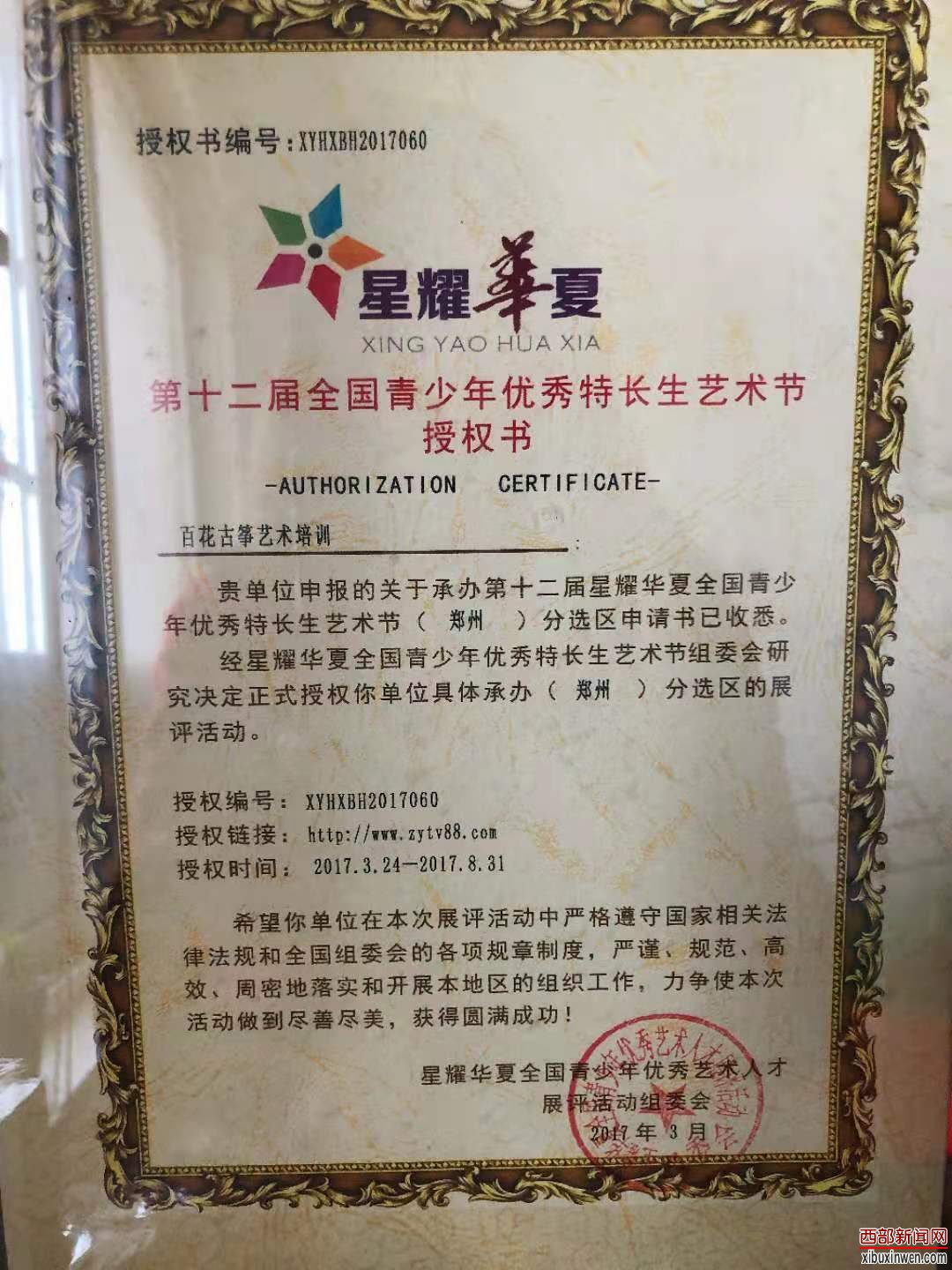百花古筝学校由董杏花老师始创于1996年,至今培养优秀学员累计数千名,97年接待全国百名市长会议演出,得到了到会各级领导的高度赞扬。98年被全国民族管弦乐学会授予河南巩义考级点,连年被评为优秀指导教师。获河南省电视台优秀战略合作单位,全国青少年特长生选拔基地。每年带领学员到北京,上海等地参加全国才艺展示,并获得优异成绩。15年受邀赴韩参加中韩国际友谊文化交流得到国内外专家的好评。为全国各大院校输送优秀人才,带领学员参与公益活动。