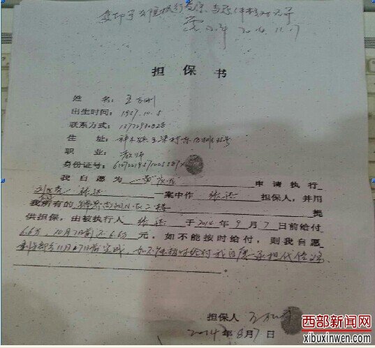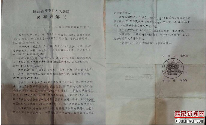 一个月后,到了被告该还三分之一欠款的时候了,这时我们又找不到被告了,于是我们再次来到神木法院,找办案的曹法官。这时曹法官才告知我们,那两套作为抵押的房子已经被转让,法院不能查封,而且,这时我们才看到上次的法律文书,保人签字是被告之一的王万刚,而且并没有曹法官所说的某主任的签字,更为甚者,曹法官居然告诉我们那份法律文书是无效的,一气之下,我找法院其他领导讨说法无果后,曹法官又说,如果你强硬着要钱,而且被告也没钱,我们只能把被告再次关起来。就这样,被告再次被关,而且经曹法官巧妙协调,被告答应把一部分欠债用现金还清。曹法官安排的是先把另外两个原告的钱还了,而这两个原告跟曹法官是非常近的亲戚关系,这样,留下我一个老太婆就好对付了。于是,在扣押期满的时候,另外两家很自然的就服从调解,被告再次被放出。这时,我无论服从不服从,都无济于事。曹法官告诉我,被告已经还了另外两家的钱,现在没现金了,你要么等,要么被告那里有一些酒用来抵账,我想了想,酒也行,先抵一部分,最起码想办法手头有点钱周转一下。结果令人吃惊。
